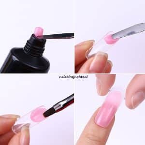 Zaključek s kovinsko lopatko, ki olajša pobiranje in nanos izdelka na nohtno ploščo.