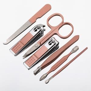 Set 7 izjemno elegantnih kozmetičnih pripomočkov, ki bodo v celoti poskrbeli za vaše roke, noge in obraz. S tem setom boste nohte skrajšali, oblikovali, odstranili suho obnohtno kožico in nohte pripravili na nadaljnje negovalne tretmaje. Orodja iz nerjavečega jekla so izjemno trpežna, odporna na obrabo in madeže ter mehanske poškodbe. Poleg tega je material hipoalergen, zato ga lahko uporabljajo tudi ljudje z zelo občutljivo kožo.