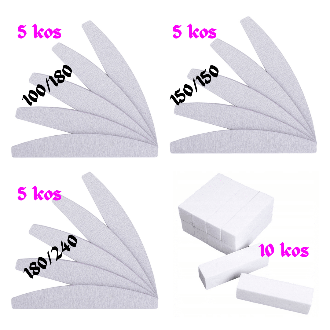 Set pil za nohte različnih granulacij in polirnih blokov bele barve. Nepogrešljivi pripomočki pri vsakodnevni manikuri.