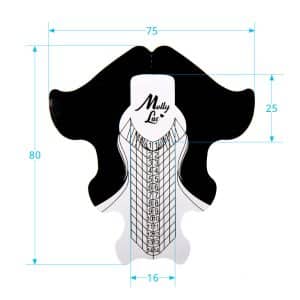 Zahvaljujoč odlično pripravljenim pomožnim linijam in dolžinski mreži lahko enostavno naredite podaljšek vseh možnih oblik. Odlično narisana sredinska črta je zagotovilo za natančno postavljeno šablono. Inovativni stranski rezi vam bodo omogočili, da ustvarite popoln tunel brez stiskanja.se Odlično postavljene pomožne oznake in dolžinska mreža bodo olajšale in pospešile delo, obenem pa zagotovile popolno strukturo in postavitev stranskih linij. Šablone odlično ohranjajo dano obliko skozi celoten proces oblikovanja nohtov brez raztezanja in deformacije.