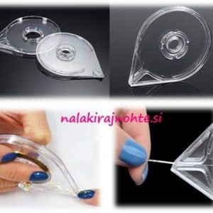 Plastični pripomoček za enostavno nanašanje okrasnih trakov in okraskov za oblikovanje nohtov. Priročen, omogoča lažje in hitrejše delo.