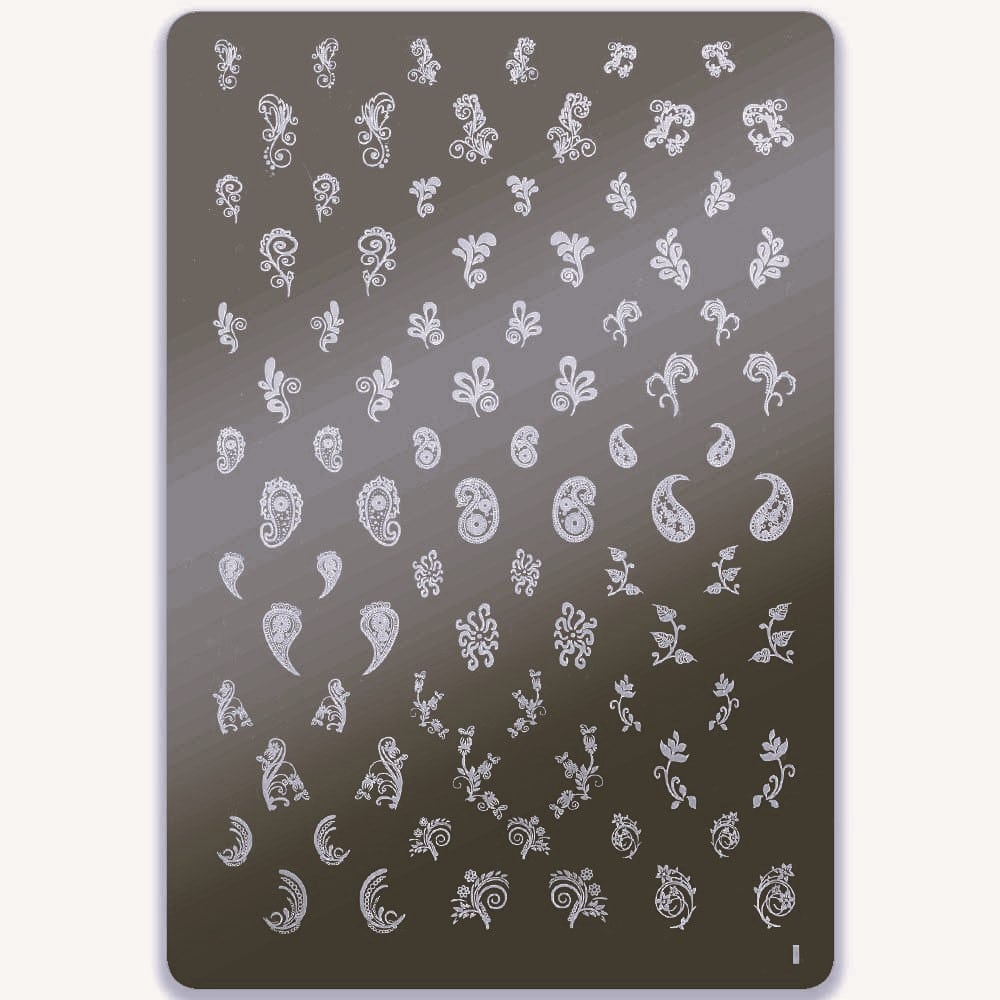 Šablona za okraševanje s čudovitimi vzorčki za žigosanje nohtov. Hiter, unikaten in enostaven način okraševanje nohtov. Šablona je zaščitena z folijo.