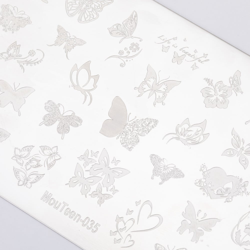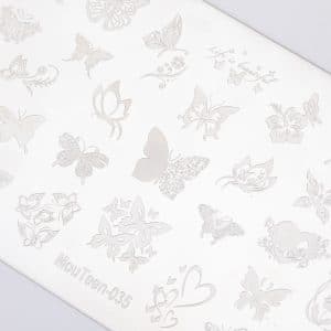Šablona za okraševanje s čudovitimi vzorčki za žigosanje nohtov. Hiter, unikaten in enostaven način okraševanje nohtov. Šablona je zaščitena z folijo.