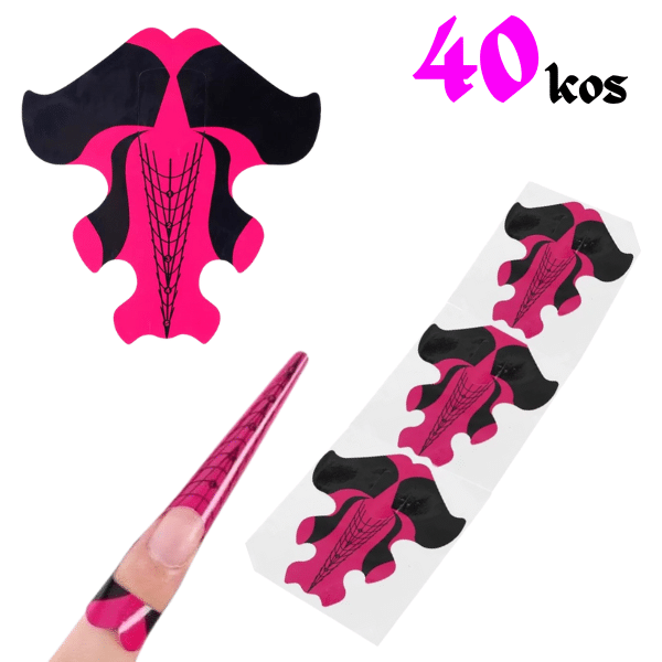 Šablone za izdelavo/podaljševanje nohtov za različne tipe nohtne plošče, tako široke kot bolj zaobljene. Velika lepilna površina in močno lepilo je zagotovilo za izjemno fiksacijo oblike in popoln oprijem na noht. Šablone imajo pomožne črte za lažje oblikovanje dolžine in oblike nohtne konice.