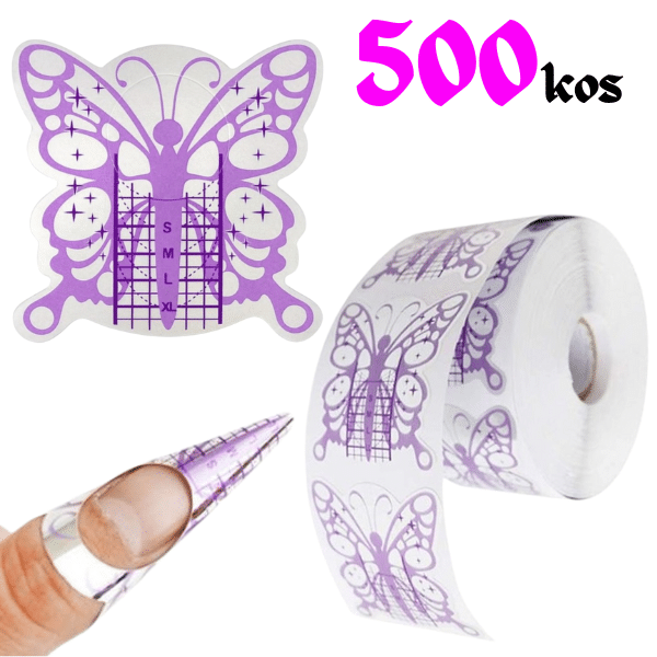 Šablone za izdelavo/podaljševanje nohtov za različne tipe nohtne plošče, tako široke kot bolj zaobljene. Velika lepilna površina in močno lepilo je zagotovilo za izjemno fiksacijo oblike in popoln oprijem na noht. Šablone imajo pomožne črte za lažje oblikovanje dolžine in oblike nohtne konice.