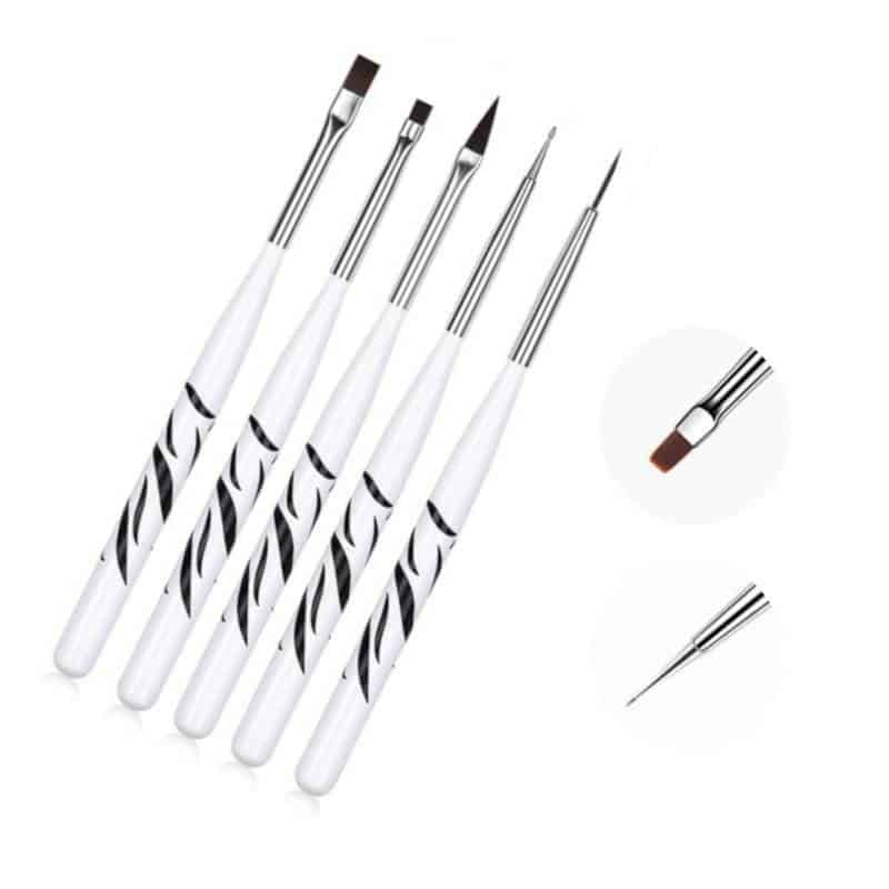 Set vsebuje 5 čopičev, ki so idealni za nanašanje gelov. Zaradi manjše velikosti so kot nalašč za začetnike – omogočajo vam, da obvladate tehniko nanašanja gelov, ne da bi preplavili obnohtno kožico. Različne oblike in velikosti vam bodo pomagale izbrati pravilen čopič za vaše potrebe.