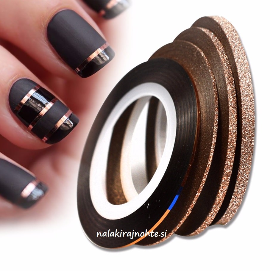 Z nitastimi trakovi z bleščicami za okraševanje nohtov boste na najlažji način z malo truda dosegli odličen učinek. Okrasni samolepilni trakovi so na voljo v različnih širinah in različnih barvnih odtenkih.